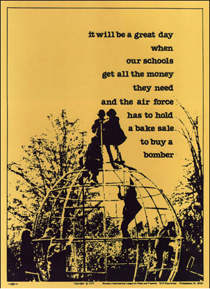 Every war fought and every new weapon system developed has drawn international comment. Posters such as those below are examples of this. There are currently 15,000 nuclear and thermonuclear weapons on earth. Many are on alert status, ready for launch. Some countries are ready to place weapons in space, orbiting the earth. Space-based weapons are a very dangerous idea. Only a treaty banning them will stop this madness.